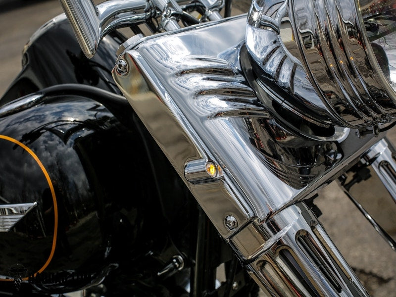 Bad Dad 900 Series Chrome Front LED Billet Turn Signals Harley FLS Softail