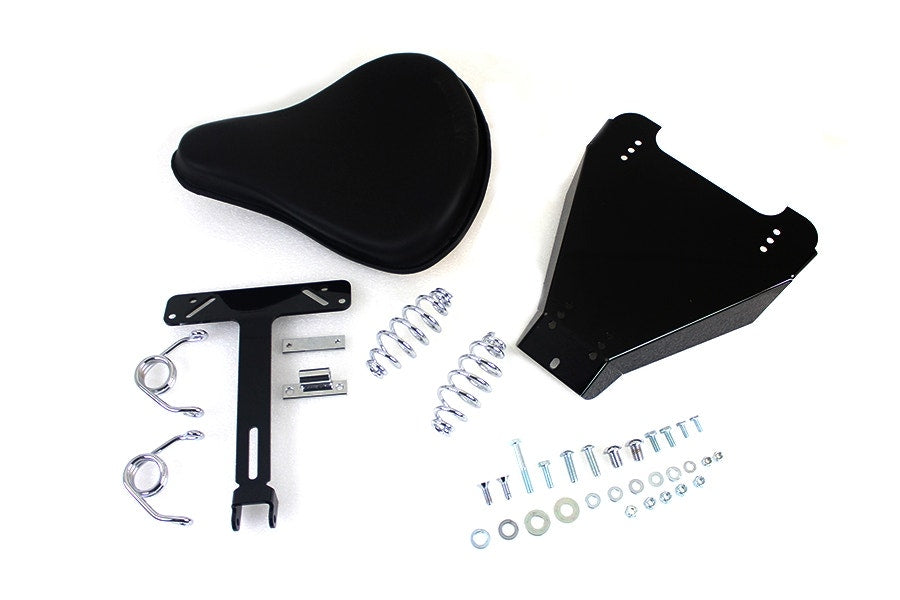 Solo seat and mount kit includes 5" springs, black frame cover and leather solo seat.