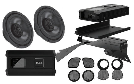 The BHD3F is an all-in-one audio system package that includes a 4-channel class D amplifier, amplifier mounting brackets and 6.5" speakers with grilles.