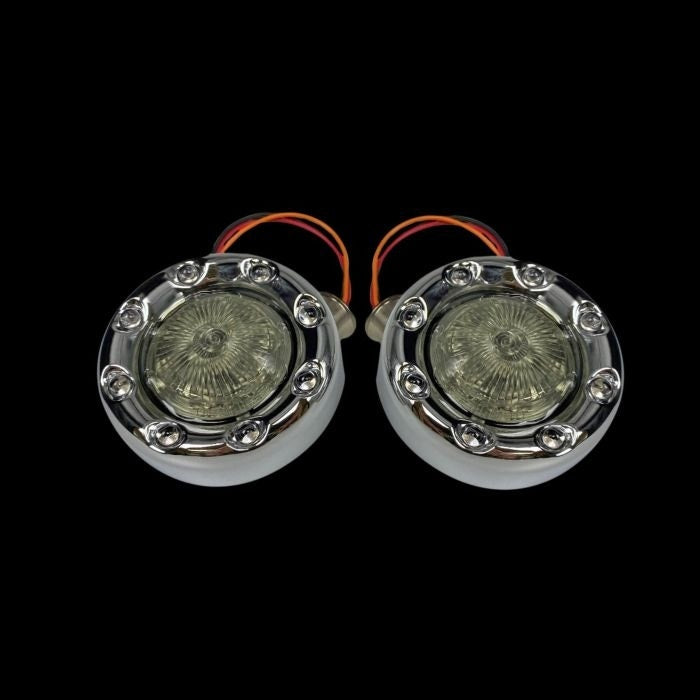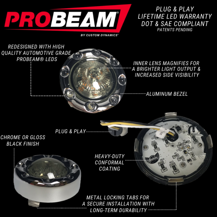 Custom Dynamics ProBeam Chrome Bullet Ringz Amber White LED Front Turn Signals JAE
