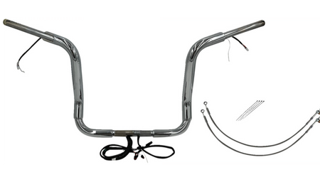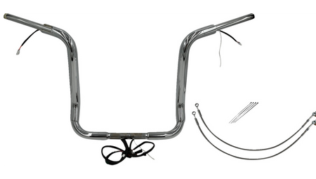- Chrome Round Top Handlebars, 1 ½”, with a 14” rise, Plug & Play