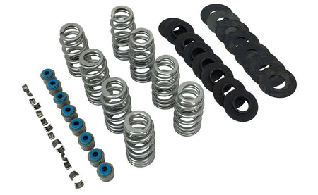 Kits include: matched set of FEULING® ENDURACE BEEHIVE® valve springs, machined spring seats, seat shims, valve locks and a set of premium Viton® valve seals equipped with a spring loaded valve stem wiper system. THIS KIT USES THE FACTORY STOCK STEEL RETAINERS, if Ti retainers are desired see spring kit part# FMC-1108 or Ti retainer kit part# FMC-1109