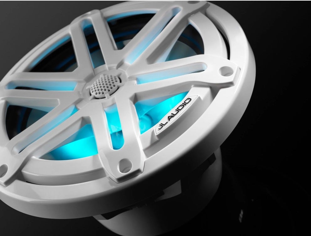 JL Audio 7.7-Inch Marine Coaxial Speakers Gloss White Sport Grille W/RGB LED