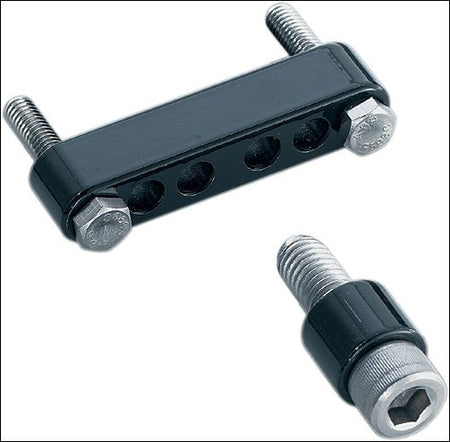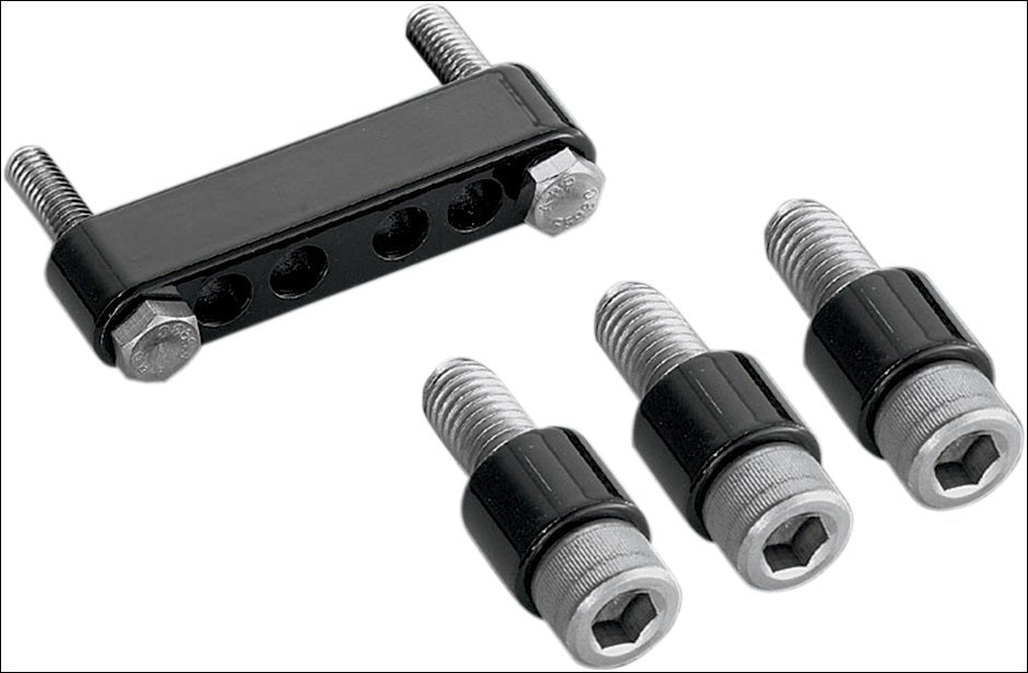 Move your stock driver boards outward 3/4 of an inch. It doesn't sound like much, but now you don't have to hug the gas tank with your thighs to get your foot fully on the board. You're also alleviating some heat build-up by allowing the hot air to get out between your leg and the bike. All bolts are stainless and the spacers are powder coated black for durability. Our Driver Floorboard Spacers are compatible with fairing lowers & offered for '92-'08 and '09-'12 Touring Models.