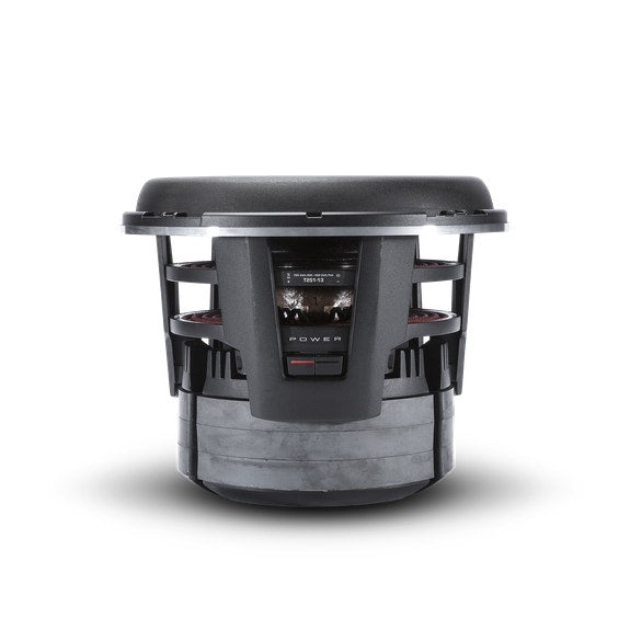 The Power T2S1-13 subwoofer features 13-inches of effective radiating cone area and a single 1-ohm voice coil for ease of wiring.