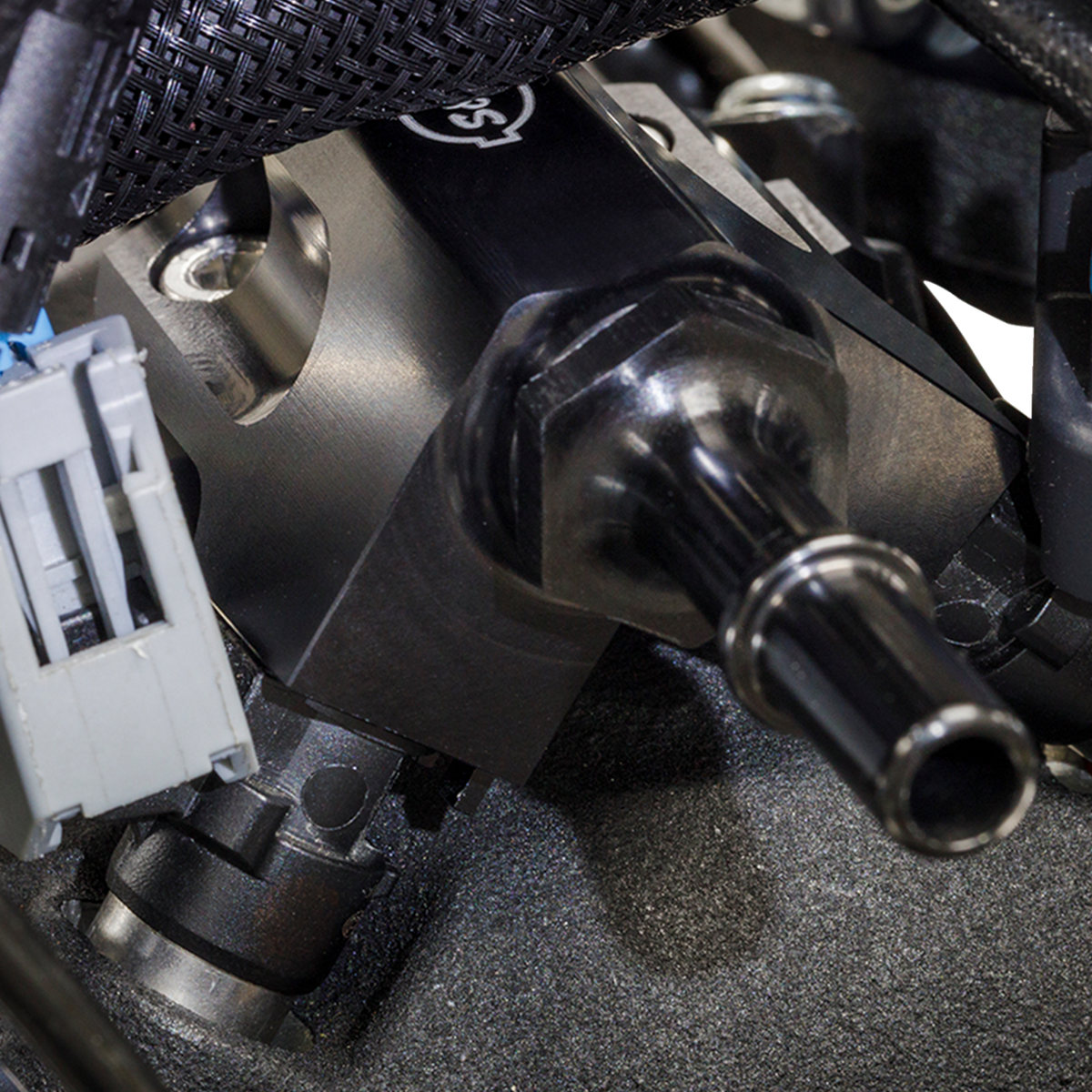 • Eliminates worry about cracks and leaks from the plastic OEM fuel rail