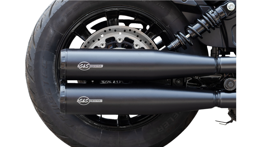 S&S Grand National Black Slip-On Mufflers 49 State 4 Harley 19-23 Scout Models