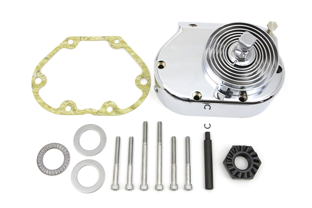 Chrome kick starter kit features slim profile design and includes chrome cover and spring.Â