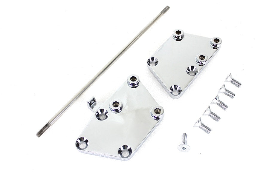 Extended forward controls features an adapter plate set to move stock forward controls 3" more forward.
