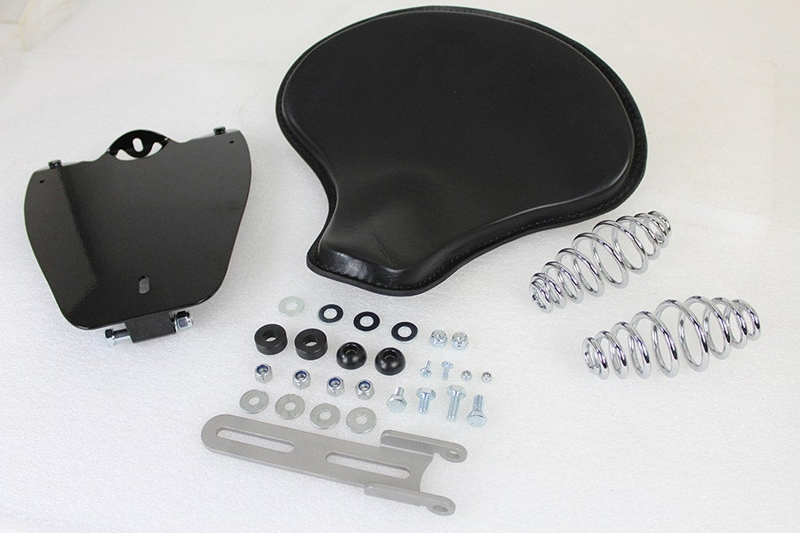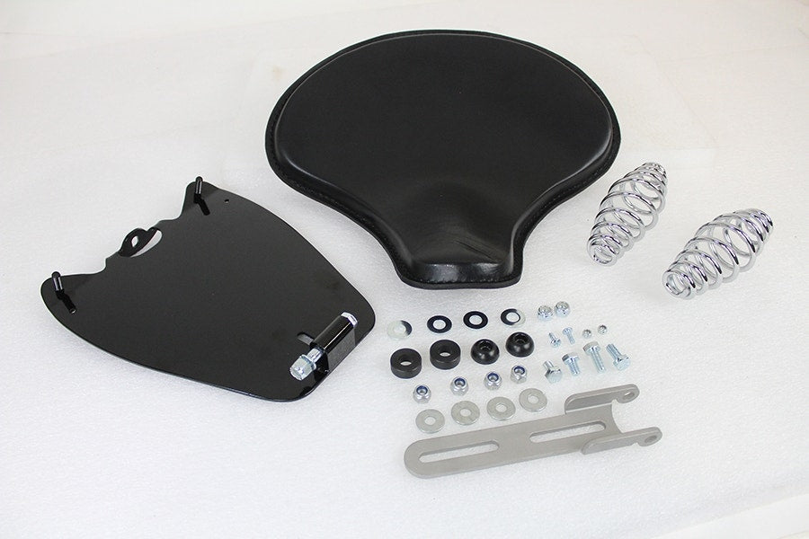 Indian Scout solo seat includes a black leather seat and a solo seat mount kit with chrome finished springs and black components.Â