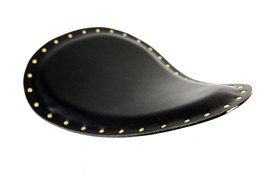 Bates bobber solo seat features a plain black finish, constructed of synthetic leather, with rivets.Â