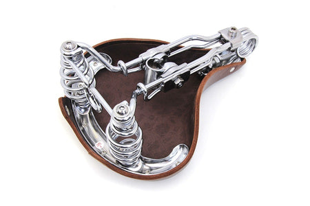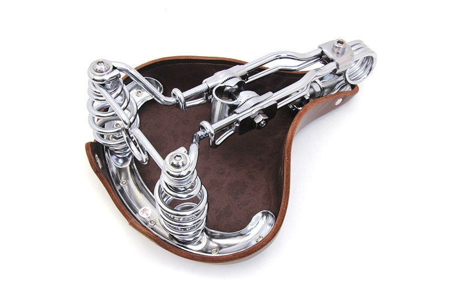 Double steel saddle solo seat features a honey brown finish witha chrome spring carriage.