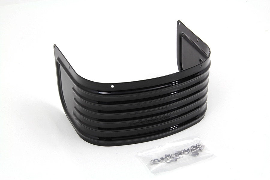 Gloss black front fender skirt constructed of steel features four raised accent ribs.Â