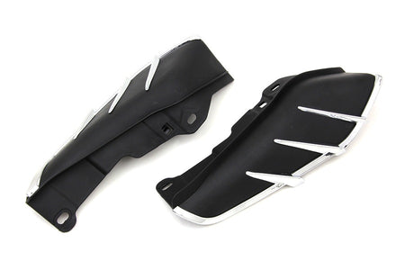 Windshield air deflector set with black finish to direct heat from mid-frame area, features a chrome trim.