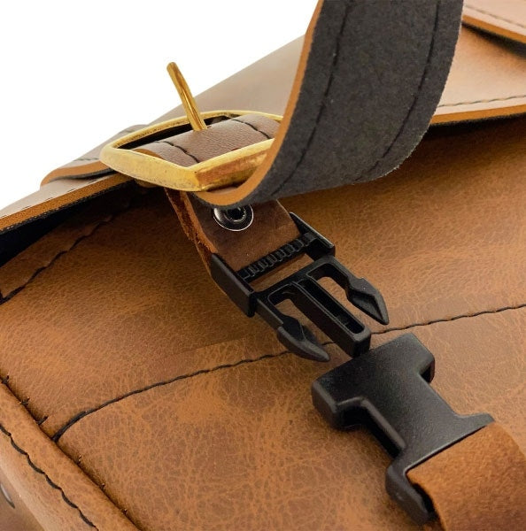 - Includes three leather mounting straps with chrome buckles for simple, secure installation to the motorcycle. Slots are pre-cut in the back of the bag for installation using leather straps.