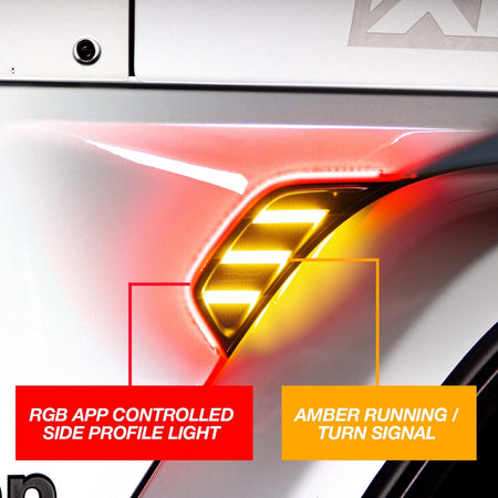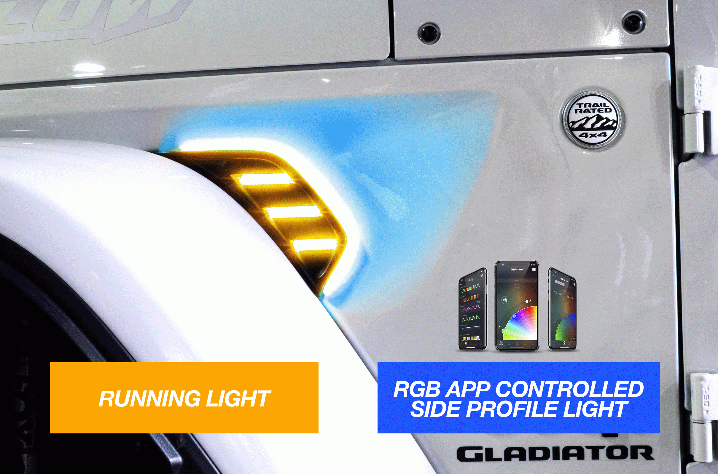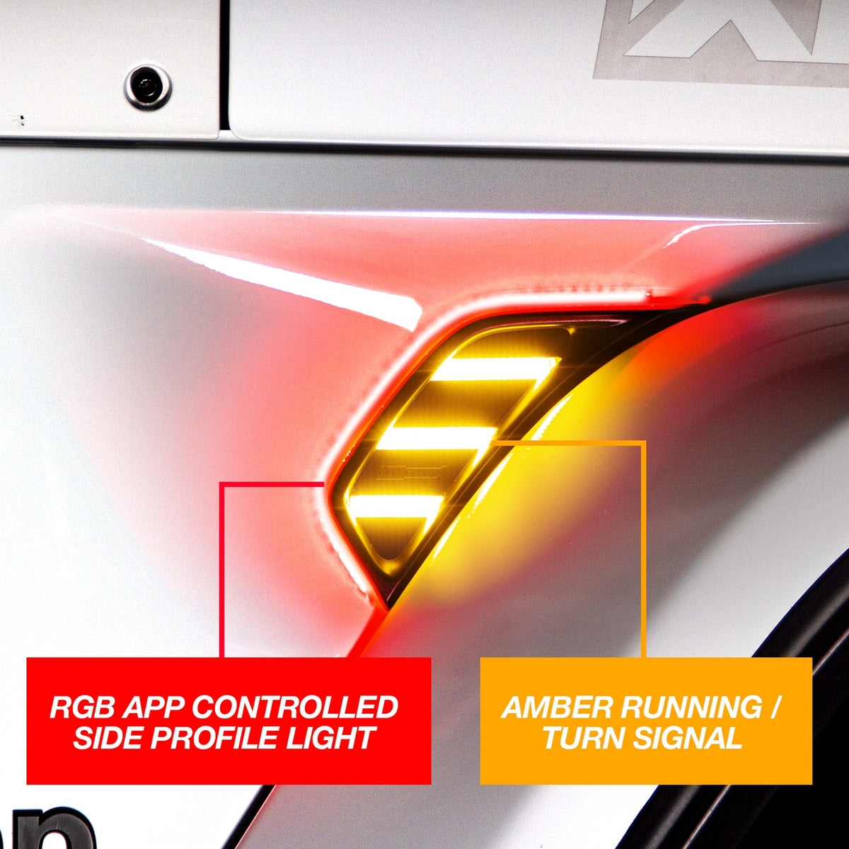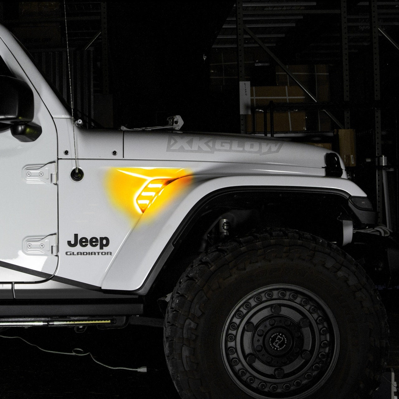 XK Glow RGB + Amber Fender Vent Light Turn Signal Running Light App Jeep JL & JT